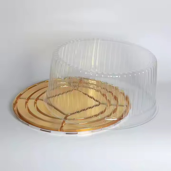 高透明度:采用高质量的透明塑料材料,透明度高,清晰展示内部蛋糕,增加消费者的购买欲望。 金色装饰:独特的金色装饰设计,增加了产品的高端质感,适合各种豪华场合。
